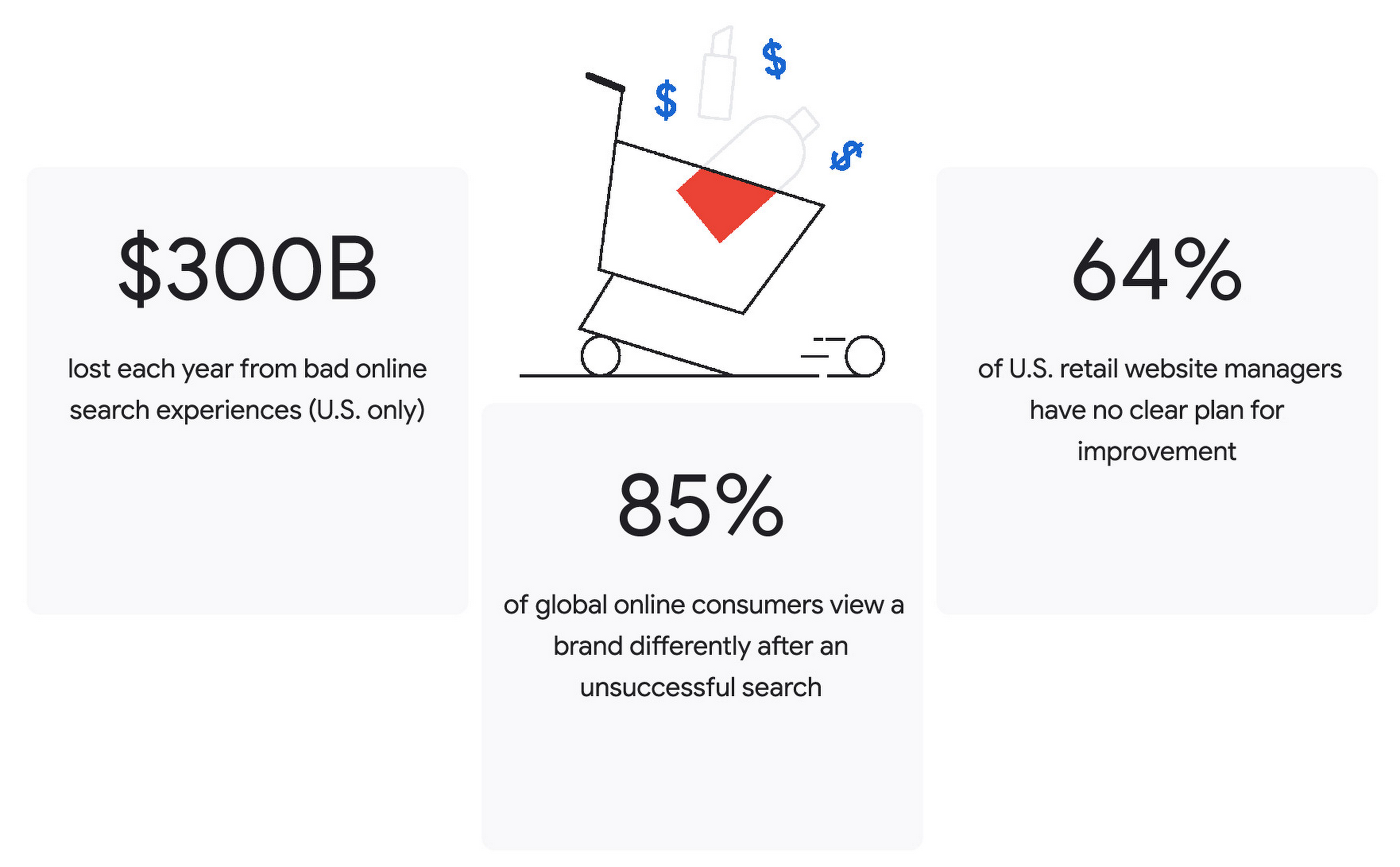In a joint survey conducted by Google Cloud and the Harris Poll, 94% of US consumers quit a shopping session on a Retail website as they don’t receive accurate results. In the US. alone, US retailers lose a whopping $300 billion every year.